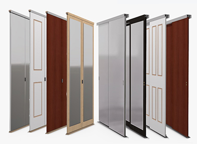 Sliding Doors don't swing out, they operate on a track and like their name, they slide out for the way. Sliders are the perfect door for very tight hallways and closets where there is no space for a traditional door to swing into the room