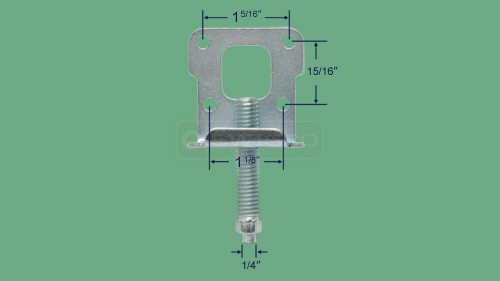 This is the Bottom pivot bracket with adjustable bolt to secure the bottom corner of the door into the floor plate or jamb bracket. The bolt rotated to adjust your door UP or DOWN