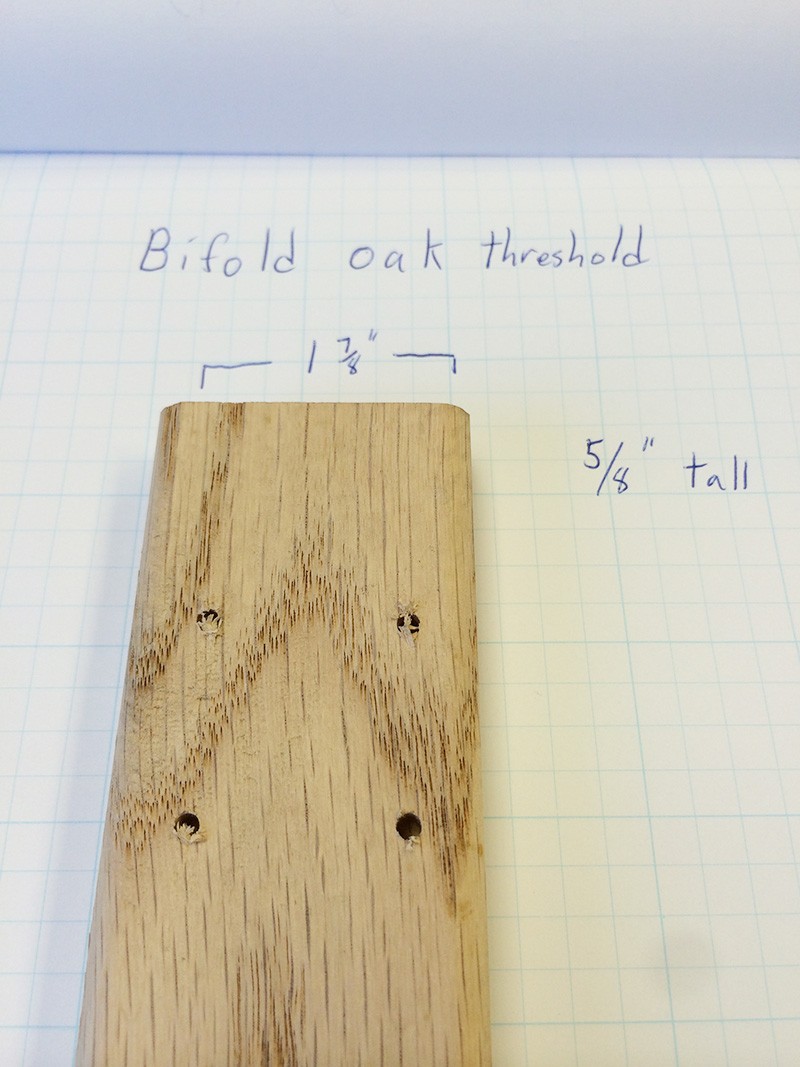 This is the bottom oak threshold for bifold doors. It is supplied unfinished and by the foot with a 2 foot minimum. Due to shipping limitations saddles longer than 84" will ship in 2 pieces.